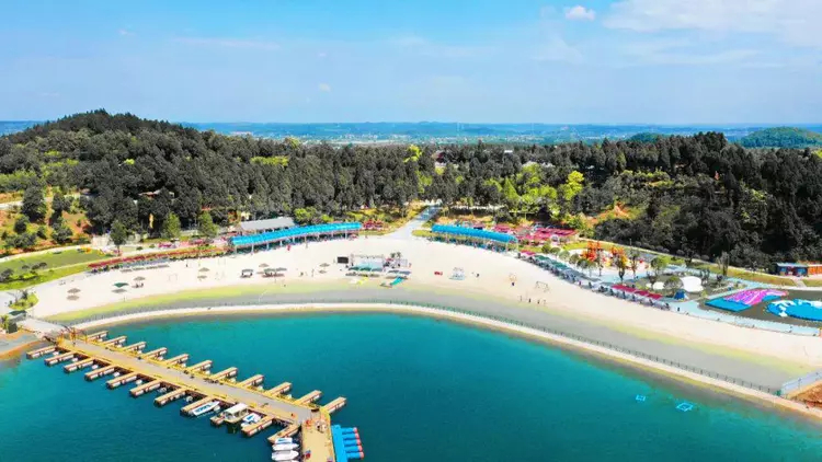 綿陽嘉成文化旅游有限公司是一家旅游開發(fā)公司,成立于2019年。 親水灣沙灘樂園項目由綿陽嘉成文化旅游有限公司開發(fā)運營,位于國家級水利風(fēng)景區(qū)——綿陽市仙海水利風(fēng)景區(qū),距綿陽市區(qū)15公里,車程約半個小時,是依托沉抗水庫建設(shè)的仙海風(fēng)景區(qū)重點旅游項目。進入仙海風(fēng)景區(qū)上坡向左進入環(huán)湖路前行1000米。項目總占地220畝,其中核心沙灘樂園占地100畝,現(xiàn)建成沙灘休閑、淺灘嬉水、水上運動,親子蹦蹦云、網(wǎng)紅多人秋千、人力過山車、水幕秋千、團隊拓展等項目十余個,還開設(shè)有特色中餐、仙海火鍋魚,自助燒烤等飲食項目。 近觀青山綠水,遠眺碧波蕩漾,清晨朝霞映翠、傍晚水天一色。親水灣沙灘主題樂園有可容納200人的沙灘會議室和30人的小型會議室;棋牌室16間; 商務(wù)KTV;餐飲中心可同時容納300人用餐;篝火晚會場地等,是婚禮壽宴、同學(xué)聚會、餐飲娛樂、商務(wù)會議、拓展培訓(xùn)、家庭親子活動的首選之地。